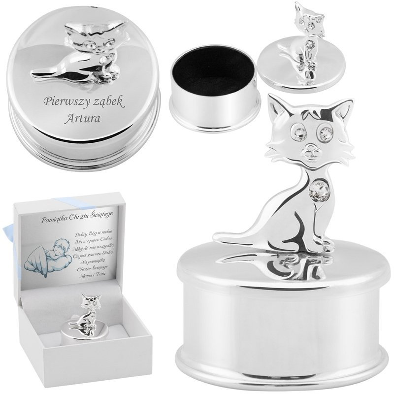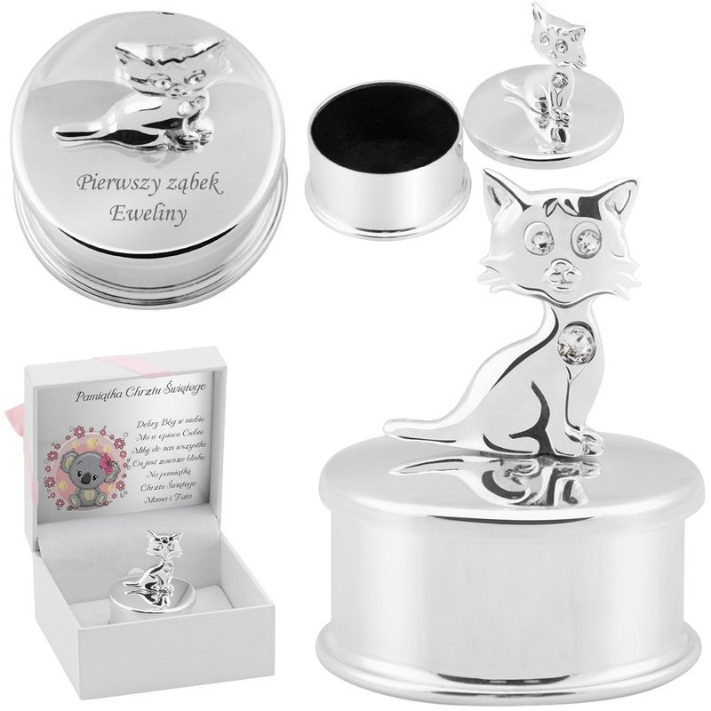 Posrebrzana szkatułka z motylkiem prezent z Grawerem na chrzest roczek