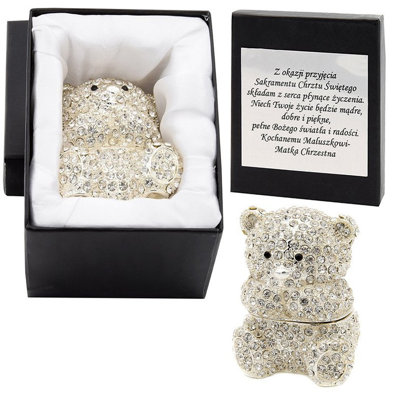 Karuzela miś z pozytywką, szkatułką i miejscem na 4 zdjęcia na chrzest roczek Dedykacja