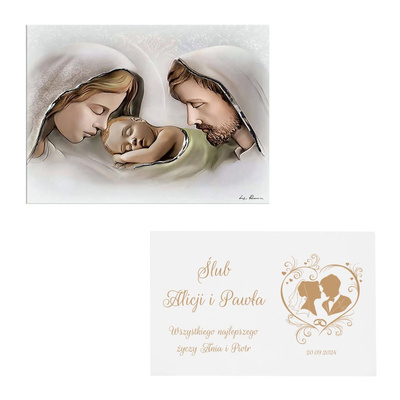 Obrazek posrebrzany /Święta Rodzina/ Pamiąka Ślubu/Grawer/10x14