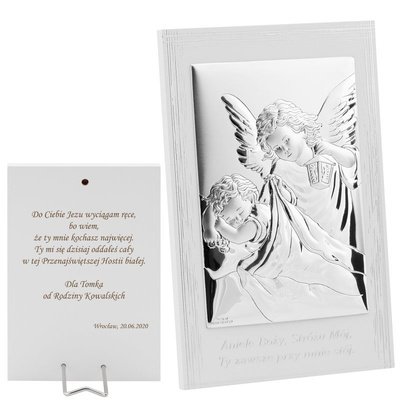 Posrebrzany Obrazek na chrzest / Anioł Stróż / Pamiątka chrztu dla dziecka / Własny grawer