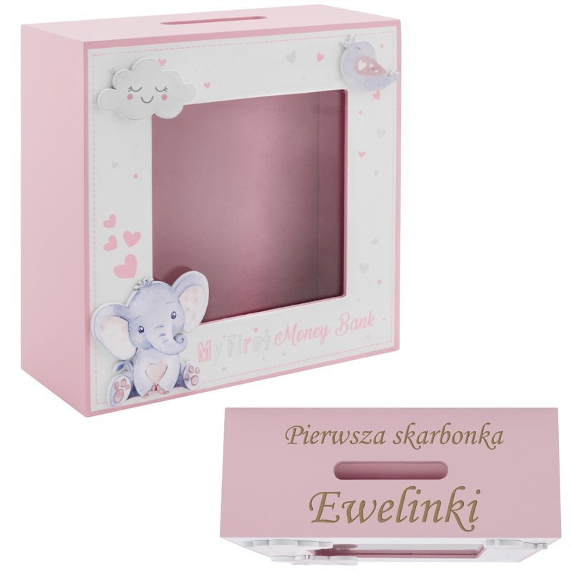 Drewniana skarbonka ze zdjęciem dziecka na roczek / Prezent z Nadrukiem