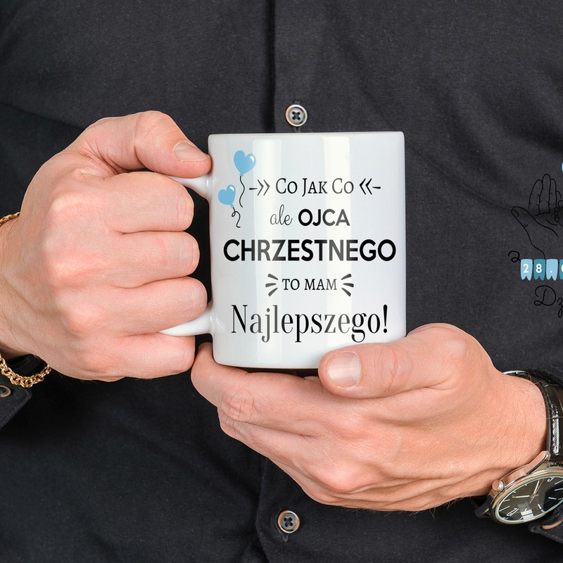 Kubek dla Chrzestnego / Najlepszy Chrzestny na Świecie! / Złoty Ornament / 330 ml / Podziękowanie dla Ojca Chrzestnego