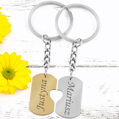 Zestaw dwóch breloków nieśmiertelnik połówka serca w kolorze złotym i srebrnym stal z Grawerem