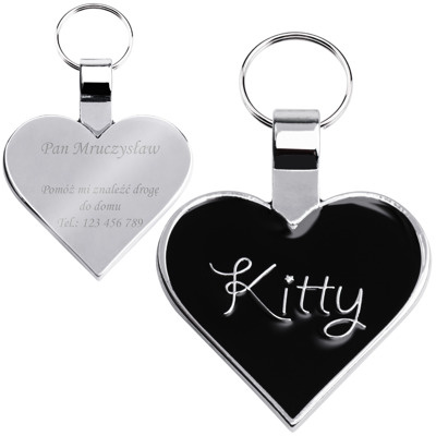 Dostępne u nas dla kota identyfikatory są śliczne i dekoracyjne. Polecamy modele okrągłe, wykończone masą brokatową, ozdobione wąsikami i uszkami; w kształcie serca z napisem "Kitty", lub w kształcie łapki z ozdobnym kryształkiem. Na odwrotnej stronie wykonujemy indywidualny grawerunek.