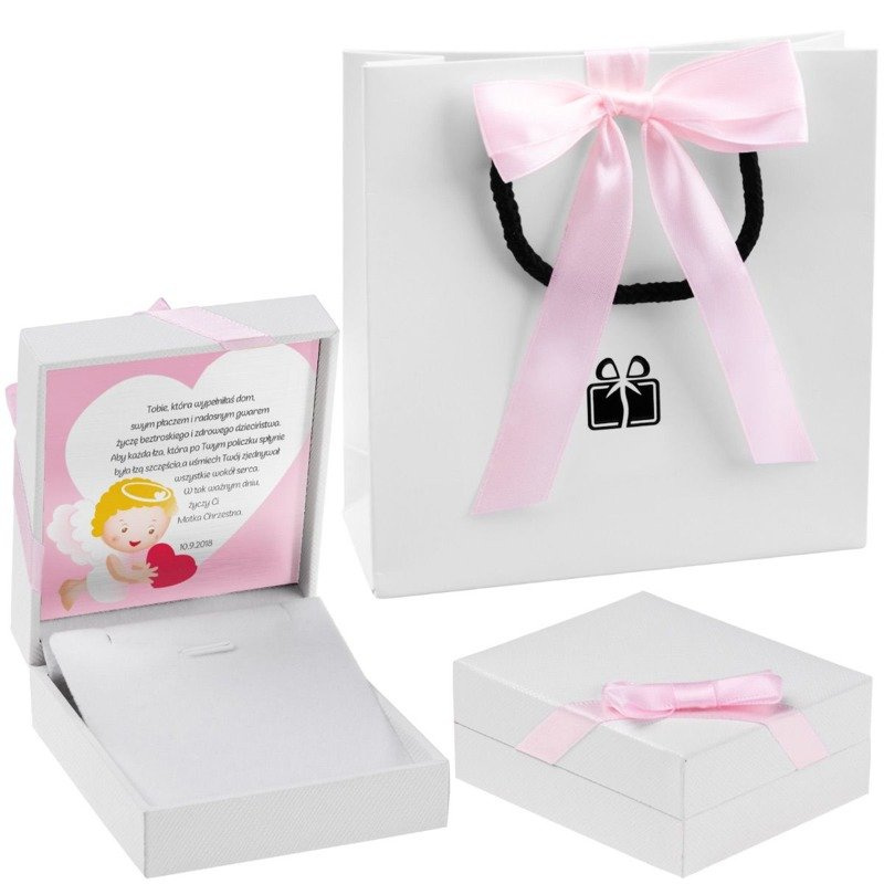 Pudełko na biżuterię białe z różową tasiemką Dedykacja