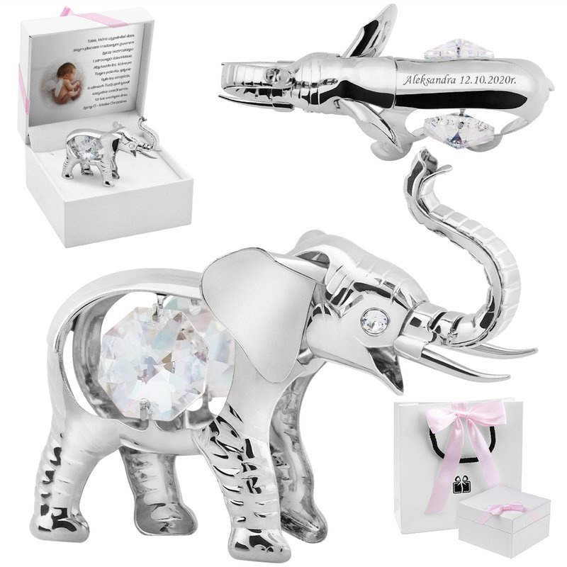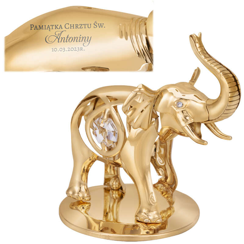 Figurka Słonik / Kolor Miedziany / Własny Grawer / Ozdobny Kryształ / Prezent na Chrzest