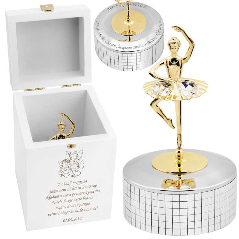 Pozytywka Balerina Swarovski prezent na walentynki urodziny z grawerem