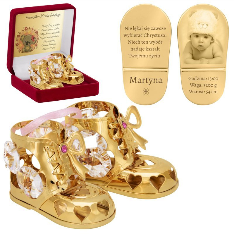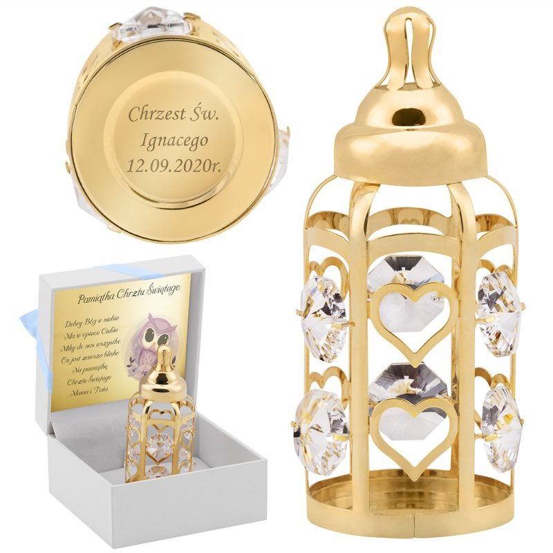 Sakrament chrztu to piękna, rodzinna uroczystość o duchowym wymiarze. W tym dniu maluszek wstępuje do wspólnoty chrześcijańskiej. Dziecko nie będzie pamiętało tego dnia, ale możemy podarować mu coś, co będzie trwałą i piękną pamiątką. Złota figurka z okolicznościowym grawerunkiem idealnie sprawdzi się na podarunek z okazji chrztu.