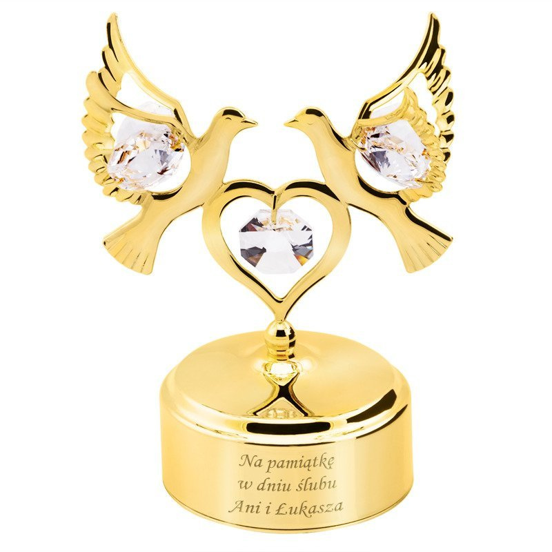 Wybór motywów jest bardzo bogaty. Figurki w kształcie baletnicy, anioła lub kwiatów znakomicie prezentują się w połączeniu z mieniącymi się austriackimi kryształkami. Każdą z nich można dopasować do okoliczności, grawerując na niej życzenia. Treść grawerunku jest dowolna, więc możemy zdecydować się na fragment wiersza, dedykację lub imiona małżonków.