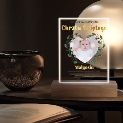 Podświetlana ramka LED z drewna i szkła akrylowego – wyjątkowa pamiątka Chrztu Świętego