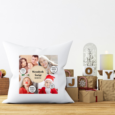 Poduszka - prezent na Święta / Kolaż zdjęć / 37 cm x 37 cm