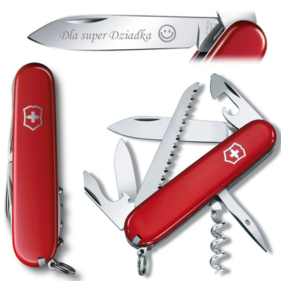 Wielofunkcyjne scyzoryki z grawerem | Solidny, niezawodny i funkcjonalny scyzoryk to przedmiot, który może przydać się każdemu. To niewielkie i poręczne narzędzie łączy w sobie wiele różnych funkcji i jest wprost niezastąpione podczas wycieczek turystycznych, ale też w wielu innych sytuacjach. Mając przy sobie scyzoryk, nie trzeba martwić się o brak korkociągu lub nożyczek pod ręką – każdą z tych funkcji posiada właśnie scyzoryk. W asortymencie naszego sklepu można znaleźć wysokiej klasy scyzoryki marki Victorinox. To niezawodne narzędzia wielofunkcyjne, które powinny przypaść do gustu podróżnikom, harcerzom, wędkarzom i miłośnikom majsterkowania. Nie oferujemy zwyczajnych scyzoryków, jakich wiele, ale markowe scyzoryki z personalizowanym grawerem. Grawerowany scyzoryk to gotowy i trafiony pomysł na nietuzinkowy prezent. Gadżet tego typu ucieszy nie tylko mężczyznę, ale również kobietę. W naszej ofercie można znaleźć wiele różnych egzemplarzy scyzoryków Victorinox, które różnią się pomiędzy sobą pod względem funkcjonalności i designu. Każdy z nich może zostać dodatkowo ozdobiony personalizowanym grawerem. Grawerowanie na scyzoryku to idealny sposób na to, by uczynić ten przedmiot absolutnie wyjątkowym. Usługa ta jest wliczona w cenę, a dokładna zawartość grawerunku zależy tylko i wyłącznie od fantazji, pomysłowości i preferencji nabywcy. Grawer może zawierać logotyp, znak graficzny, dowolny napis, imię, inicjały, sentencję lub jakiekolwiek inne elementy, które sprawią, że scyzoryk Victorinox nabierze jeszcze bardziej osobistego charakteru. Scyzoryki marki Victorinox cieszą się ogromnym uznaniem i zainteresowaniem na całym świecie. To szwajcarska marka, która z odpowiednią precyzją już od lat konstruuje kolejne serie scyzoryków. Ze scyzoryków tej marki korzystali żołnierze szwajcarskiej armii, a teraz mogą po nie sięgnąć wszyscy i to w wariancie personalizowanym – z indywidualnym grawerunkiem. Scyzoryk tej klasy powinien ucieszyć każdego. To doskonały wybór dla ojca, dziadka, przyjaciela i dla wielu innych osób, którym chcemy sprawić oryginalny i praktyczny upominek.