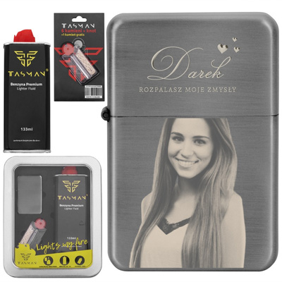 Zapalniczka benzynowa ze zdjęciem TASMAN / Rozpalasz moje zmysły / Grawer / benzyna / knot / kamienie