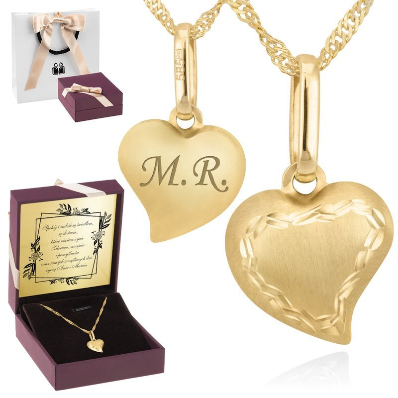 Złoty wisiorek w kształcie serca z cyrkoniami z łańcuszkiem pr. 333 z Dedykacją
