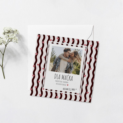 Kartka na 18 urodziny ze zdjęciem, czarno-białe paski, personalizowana