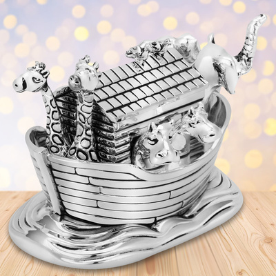 Na Chrzest: niebieska karuzela z konikami, pozytywka z grawerem