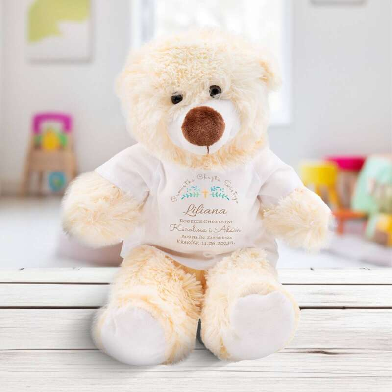 Miś pluszowy na Chrzest / Pamiątka Chrztu Świętego / Nadruk na koszulce / Miś z dedykacją / Prezent na Chrzest / Chrzestni