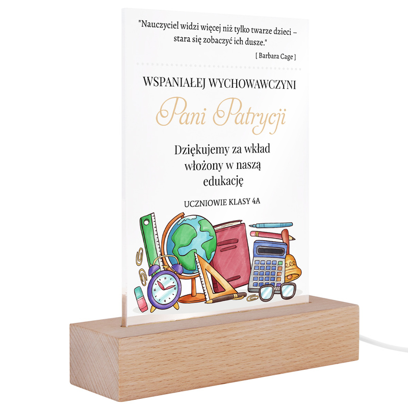 Podświetlana ramka LED z dedykacją i zdjęciem – Prezent dla Nauczyciela