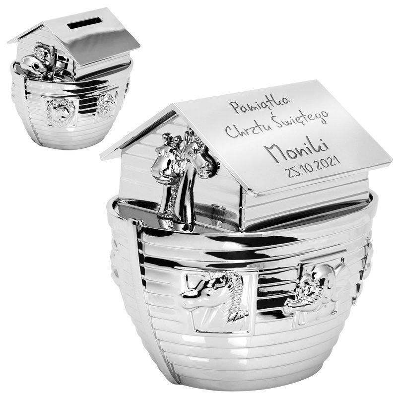 Pozytywka dla dziecka - Arka Noego / posrebrzana / na Chrzest Św., Roczek / Dedykacja w eleganckim pudełku