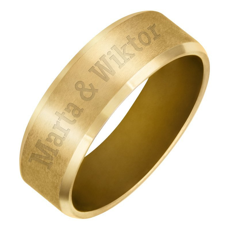 Obrączka stalowa kolor złoty z Grawerunkiem na zewnątrz