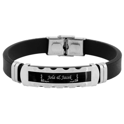 Męska bransoletka z kauczuku i stali 316L z grawerem