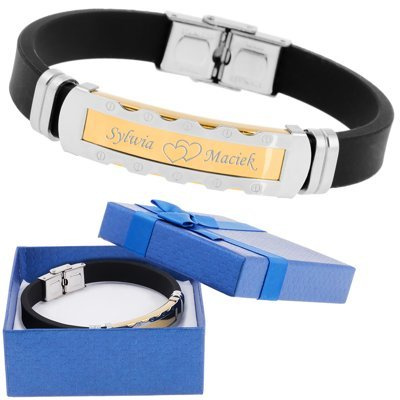 Męska bransoletka kauczukowa 316L ze złotą blaszką z grawerem