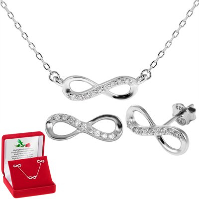 Srebrny zestaw kolczyki + naszyjnik mała nieskończoność Dedykacja