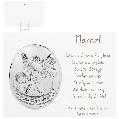 Srebrny Obrazek Anioł Stróż Pamiątka Chrztu Grawer