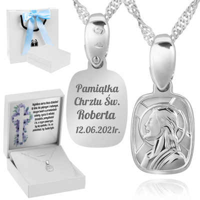 Srebrny medalik z Jezusem pamiątka Chrztu Św. Dedykacja