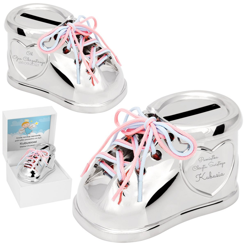 Skarbonka bucik prezent na chrzest roczek z grawerem