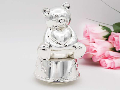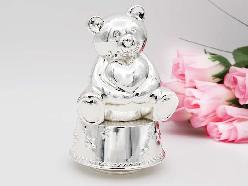 Karuzela miś z pozytywką, szkatułką i miejscem na 4 zdjęcia na chrzest roczek