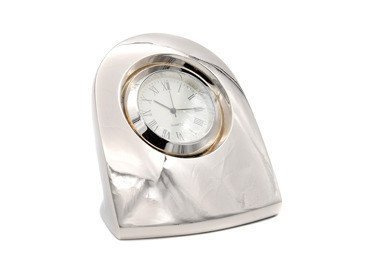 Posrebrzany metalowy zegar kwarcowy na biurko z ramką GRAWER PREZENT