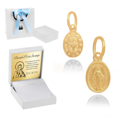 Medalik ze złota / Matka Boska / Własna dedykacja / Złoto pr. 585 / Pamiątka na Komunię dla dziewczynki