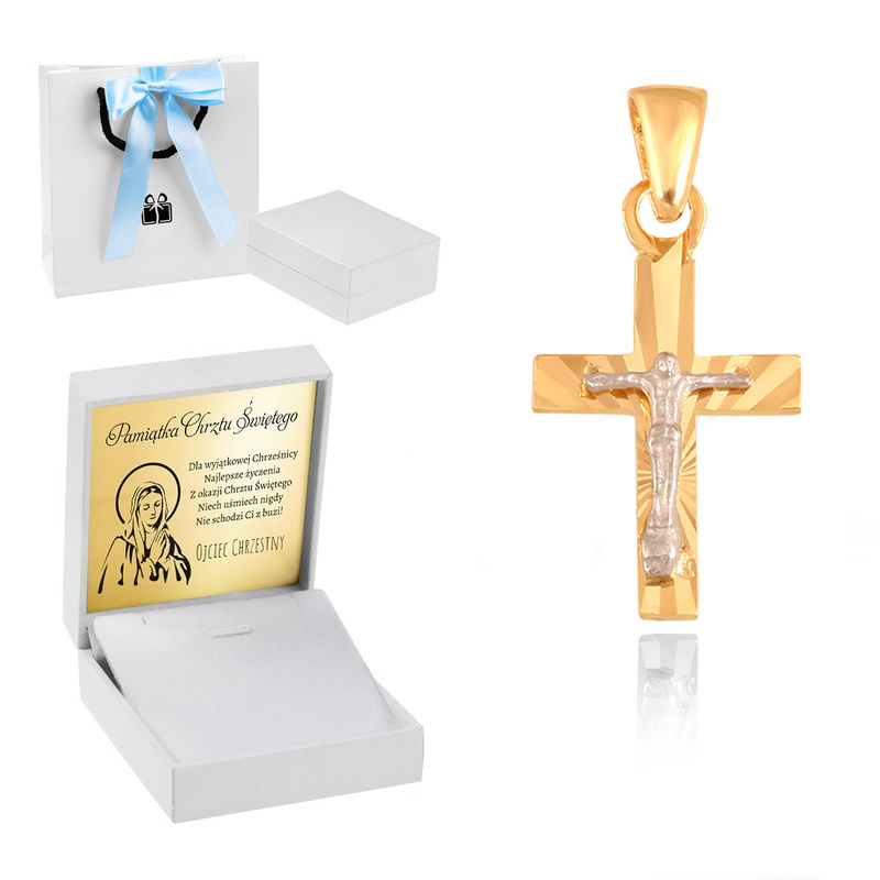 Złoty Krzyżyk na Komunię / pr. 585 / Dedykacja / Prezent na Chrzest dla Dziewczynki / Pamiątka