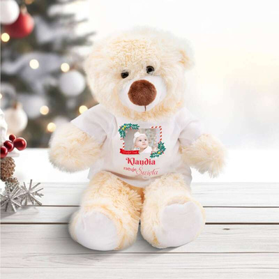 Świąteczny miś pluszowy z własnym zdjęciem i imieniem Personalizacja