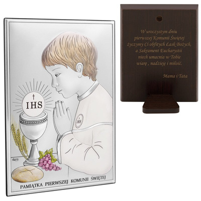 Komunia chłopca – srebrny obrazek z grawerem na odwrocie