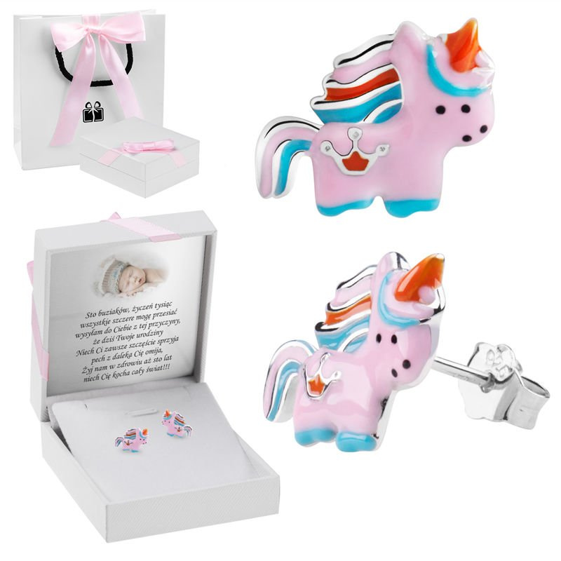 Kolczyki Jednorożce Emaliowane Srebro pr. 925 Prezent z Dedykacją