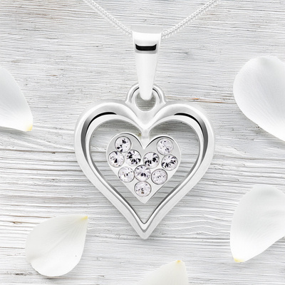 Naszyjnik Serce kryształy Srebro pr. 925 Dedykacja