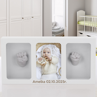 Biała potrójna ramka z zestawem do odlewów 3D – pamiątka narodzin i Chrztu
