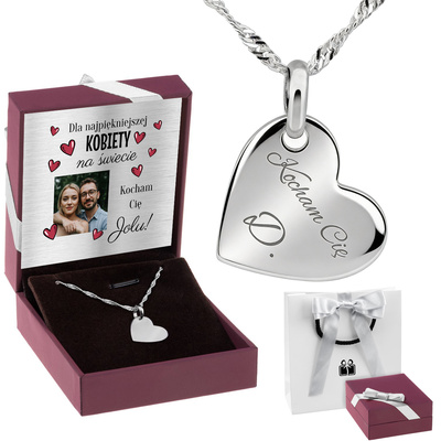 Walentynki: Naszyjnik serce 925 z grawerem do 15 znaków w pudełku