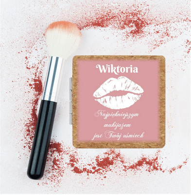 Lusterko z nadrukiem / Własny nadruk / Korkowa obudowa / Prezent na Dzień Kobiet / Lusterko kieszonkowe / Uśmiech
