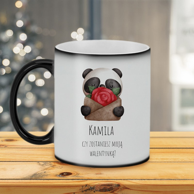 Walentynkowy czarny kubek magiczny błyszczący z imieniem