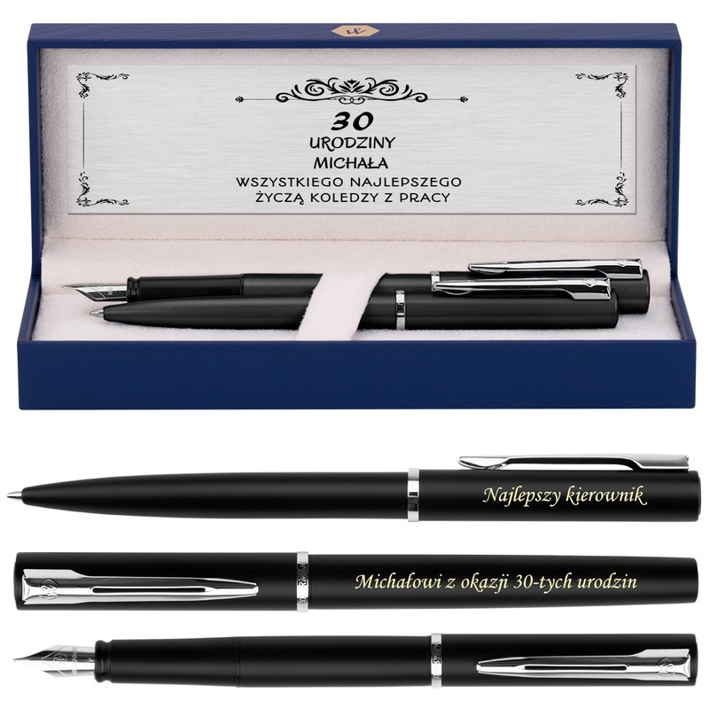 Zestaw długopis + pióro / Waterman Allure czarny CT / Pudełko z Dedykacją / Prezent dla kolegi z pracy / Dedykacja