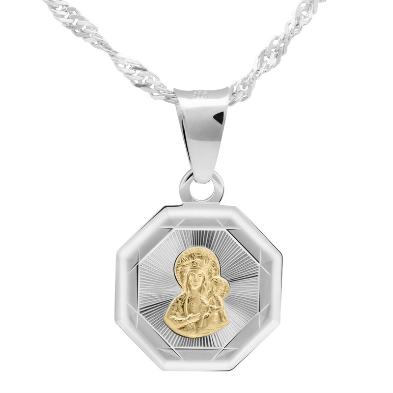 Srebrny medalik Matka Boska Częstochowska Pozłacana pr. 925 Grawer