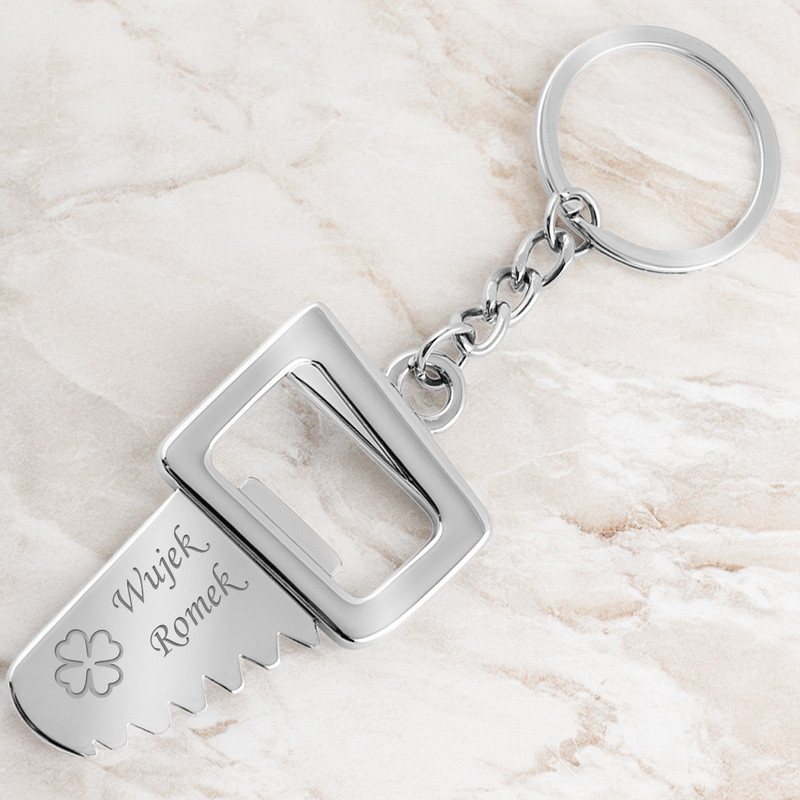 Brelok i otwieracz do kluczy w kształcie piły z Grawerem