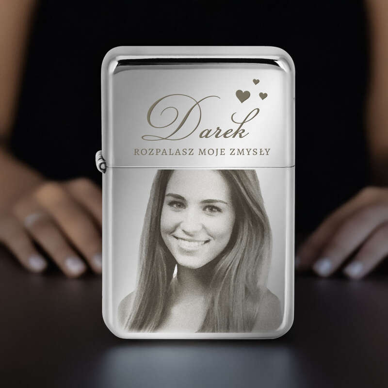 Walentynkowa zapalniczka benzynowa Tasman srebrna z grawerem