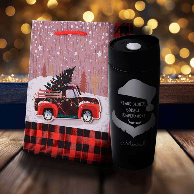 Świąteczny zestaw: kubek termiczny z grawerem i torebką