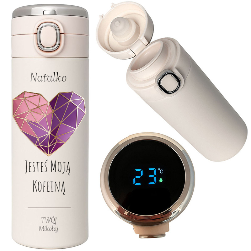 Kubek termiczny z wyświetlaczem LED – personalizowany nadruk na Dzień Kobiet 500 ml