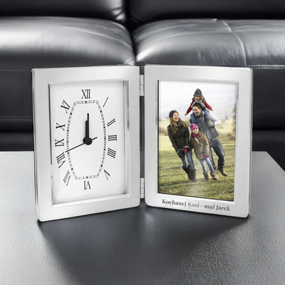 Zegar z ramką na zdjęcie / Prezent na Urodziny / Własny grawer / Prezent ze zdjęciem
