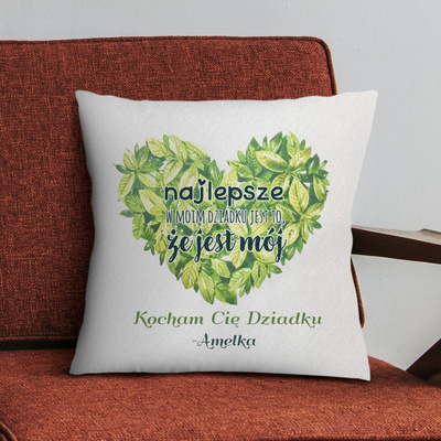 Poduszka na Dzień Dziadka z zielonym sercem Personalizacja